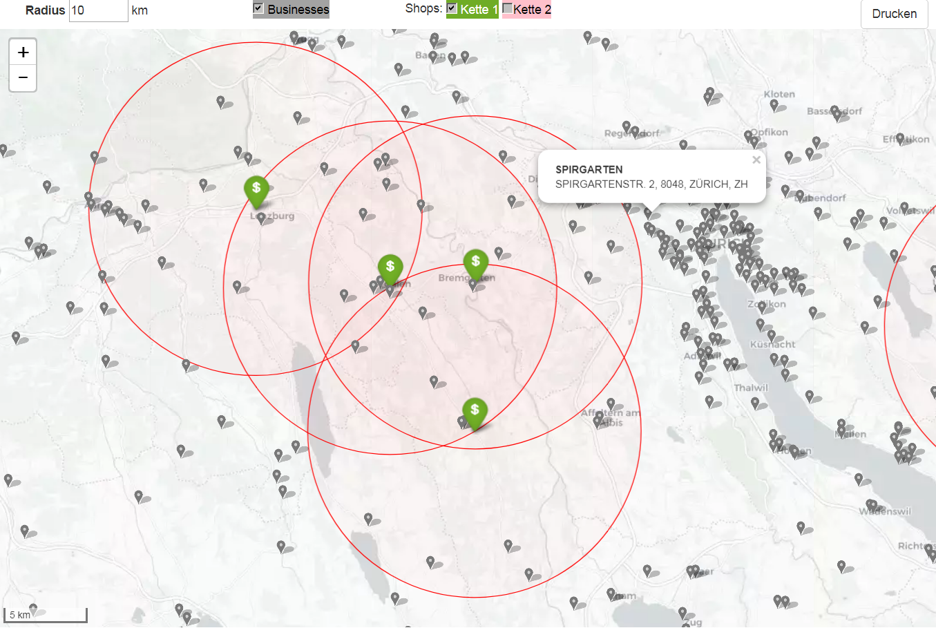 ProduktInteraktive und quantitative Darstellung von Sales-Lokationen und Markt-Einzugsgebieten zur Analyse und Standortevaluation
