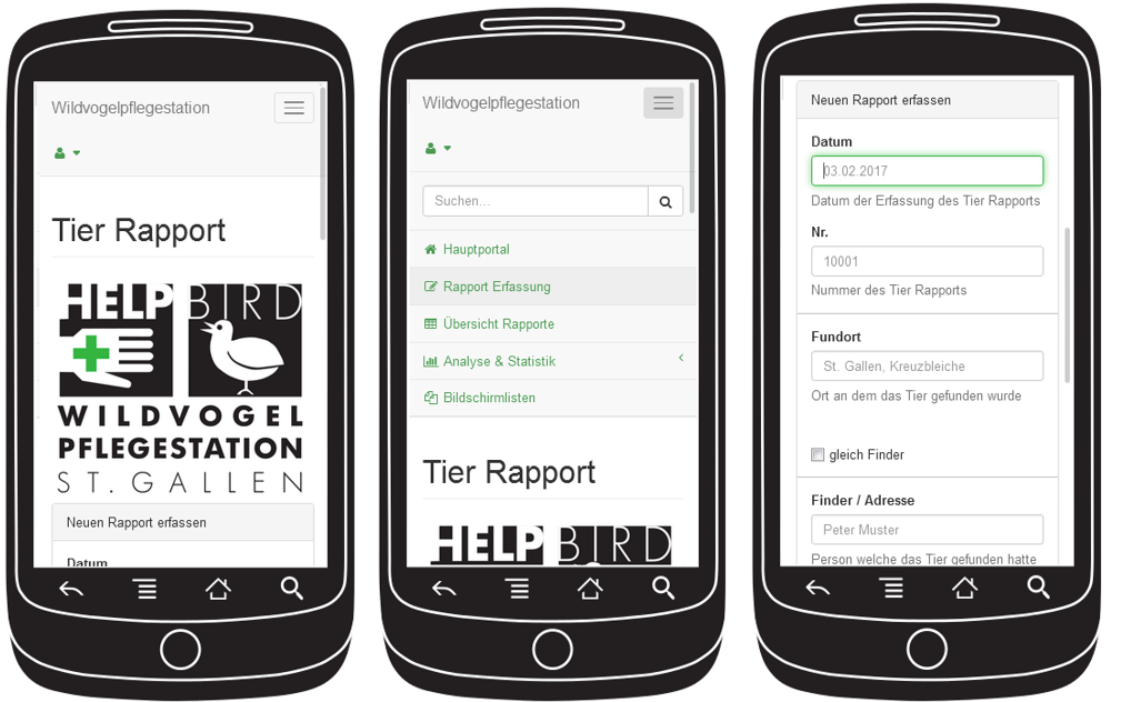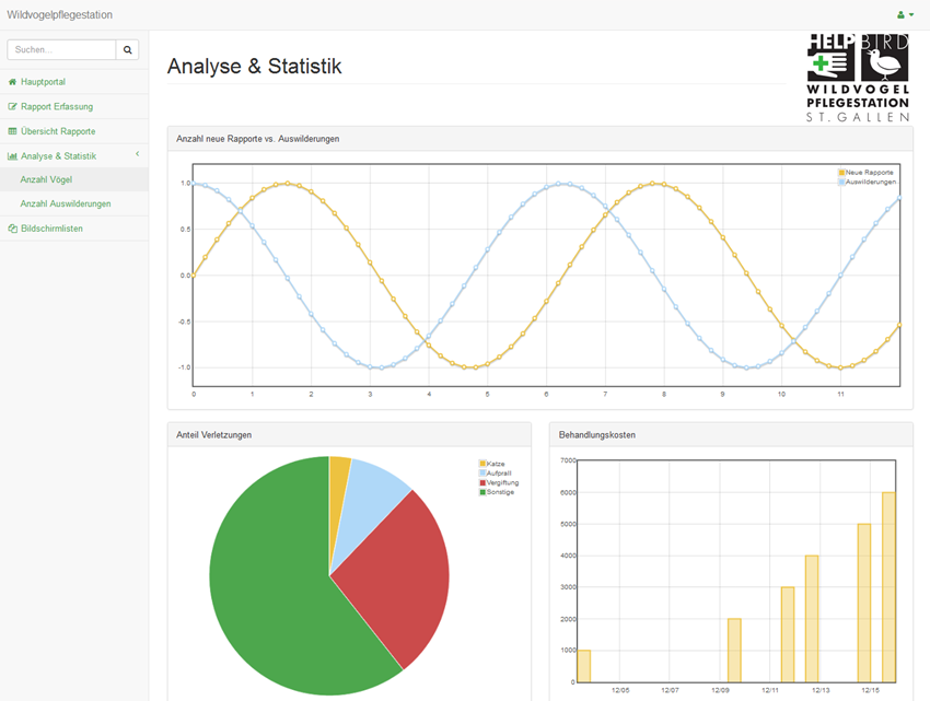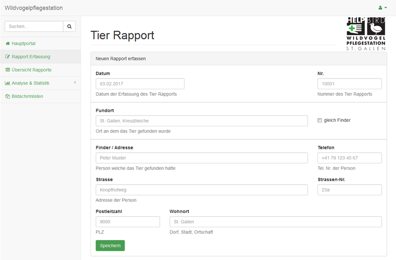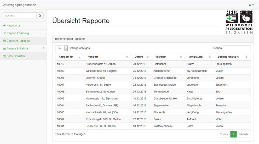 ProduktWeb-Applikation zur Dokumentation und Registrierung verletzter und kranker Wildvögel, Datenexport für das Amt für Natur, Jagd und Fischerei St. Gallen